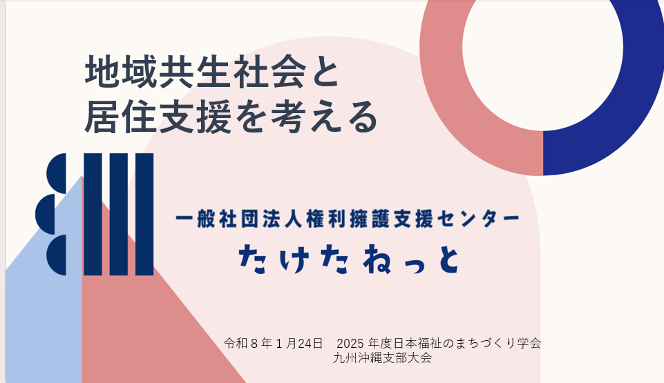2026年1月24日、(一社)日本福祉のまちづくり学会九州沖縄支部主催による、2025年度支部大会・シンポジウムが開催されました。 本シンポジウムは、「住宅確保要配慮者の居住支援を考える~居住サポート制度が目指す未来像~」をテーマに行われ、最初に国... -